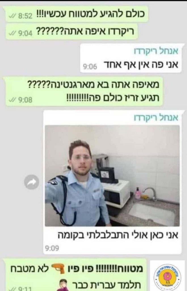El israelí que estaba al lado casi se desmaya de la risa.